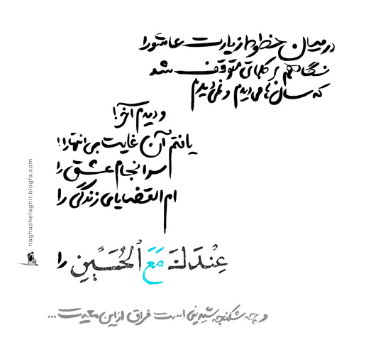 بین بازار غلامان نظر اندخته ای**جنس مرغوب نبودم نخریدی باشد دست عشاق گرفتی و حرم بردی آه** طبق معمول زمن ست کشیدی باشد این همه زار زدم داد زدم کرب و بلا** این حرم گفتن من را نشنیدی باشد چه کنم تلخی تو باز حلاوت دارد ** دل تنگم به خدا میل زیارت دارد